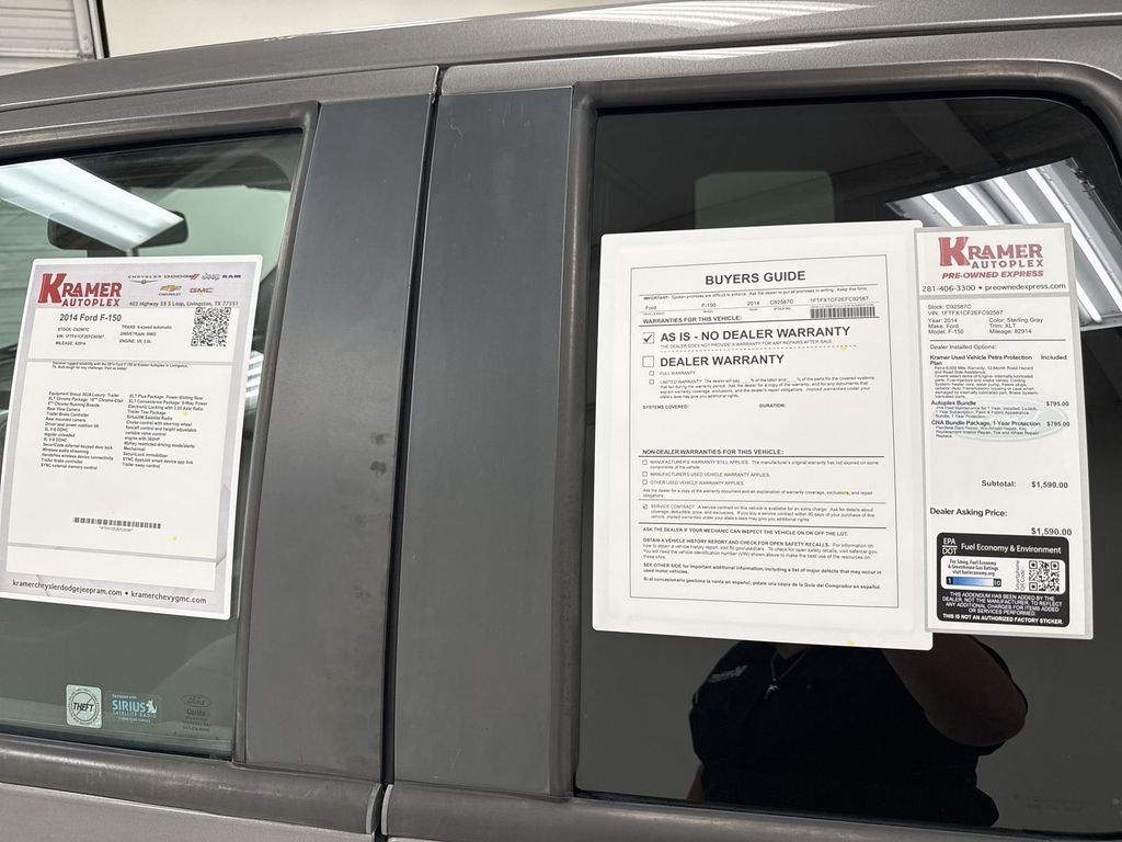 See what's behind you with the back up camera on the vehicle. with XM/Sirus Satellite Radio you are no longer restricted by poor quality local radio stations while driving the Ford F-150. Anywhere on the planet, you will have hundreds of digital stations to choose from. This vehicle has a clean CARFAX vehicle history report. This vehicle is a certified CARFAX 1-owner. This unit has satellite radio capabilities. Enjoy the incredible handling with the rear wheel drive on the vehicle. Greater towing safety becomes standard with the installed trailer brake. It emanates grace with its stylish gray exterior. Set the temperature exactly where you are most comfortable in the Ford F-150. The fan speed and temperature will automatically adjust to maintain your preferred zone climate. This model has a V8, 5.0L high output engine. This 2014 Ford F-150 has adjustable pedals that are luxurious and safety conscious. The Ford F-150 has an automatic transmission.