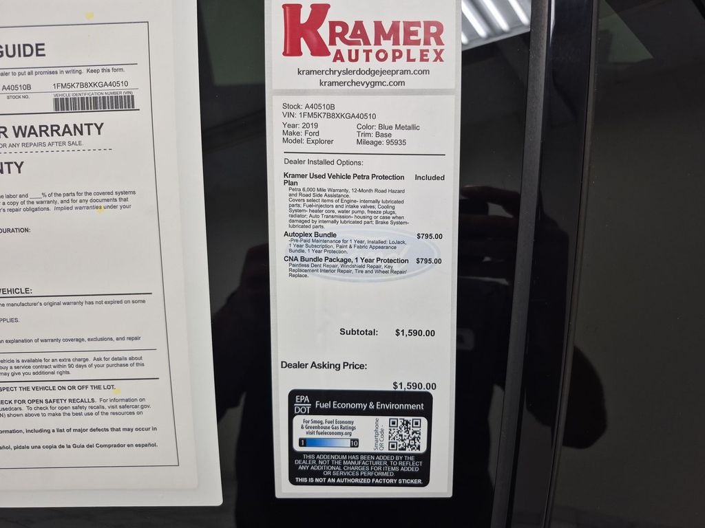 Protect this vehicle from unwanted accidents with a cutting edge backup camera system. with XM/Sirus Satellite Radio you are no longer restricted by poor quality local radio stations while driving this vehicle. Anywhere on the planet, you will have hundreds of digital stations to choose from. Bluetooth® technology is built into this model, keeping your hands on the steering wheel and your focus on the road. This 2019 Ford Explorer has a V6, 3.5L high output engine. Maintaining a stable interior temperature in this 1/2 ton suv is easy with the climate control system. Impresses the most discerning driver with the deep polished blue exterior on the vehicle. Front wheel drive on this unit gives you better traction and better fuel economy. Easily set your speed in the Ford Explorer with a state of the art cruise control system. Increase or decrease velocity with the touch of a button. The high efficiency automatic transmission shifts smoothly and allows you to relax while driving.