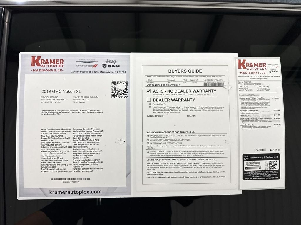 Lane Keep Assist in this vehicle helps maintain safe driving by gently steering to stay within the lane. Start this model from inside with remote start. The leather seats in the GMC Yukon XL are a must for buyers looking for comfort, durability, and style. Bluetooth® technology is built into this vehicle, keeping your hands on the steering wheel and your focus on the road. This unit has auto-adjust speed for safe following. This GMC Yukon XL warns of approaching vehicles with Cross-Traffic Alert. The installed navigation system will keep you on the right path. Protect the GMC Yukon XL from unwanted accidents with a cutting edge backup camera system. This vehicle's Lane Departure Warning helps keep you in your lane. This 2019 GMC Yukon XL 1500 offers Android Auto for seamless smartphone integration. Apple CarPlay: Seamless smartphone integration for this GMC Yukon XL - stay connected and entertained on the go!