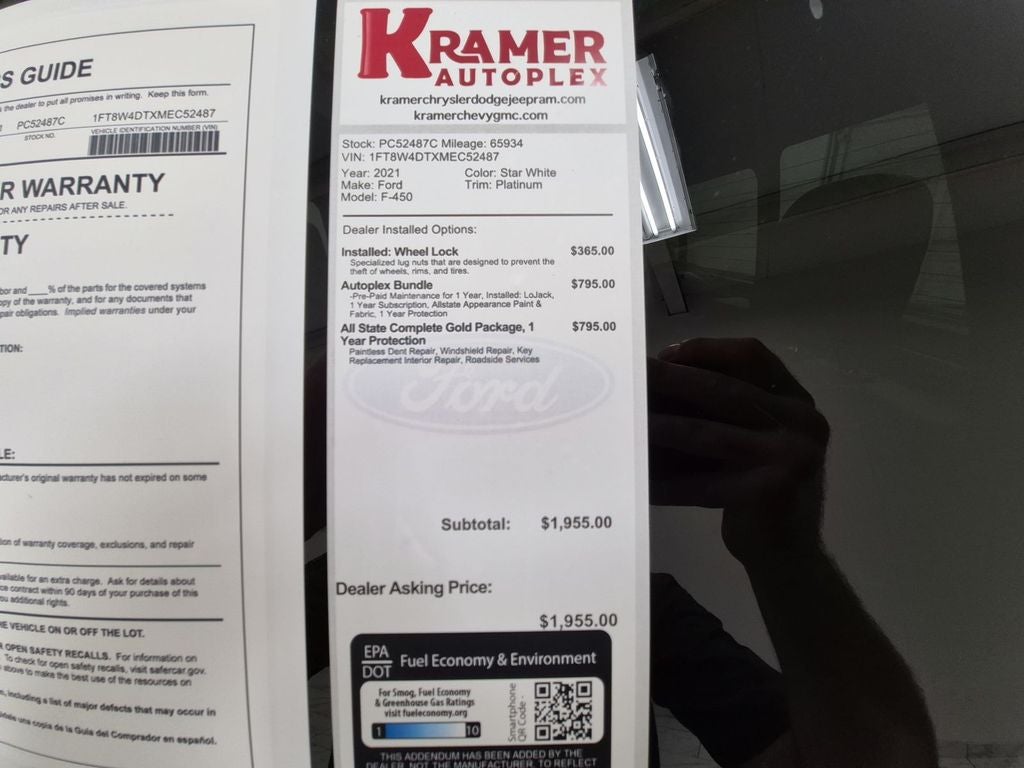 An off-road package is equipped on this Ford F-450. Never get into a cold vehicle again with the remote start feature on it. This 1 1/2 ton pickup is equipped with the latest generation of XM/Sirius Radio. Protect this 2021 Ford F-450 from unwanted accidents with a cutting edge backup camera system. Our dealership has already run the CARFAX report and it is clean. A clean CARFAX is a great asset for resale value in the future. This 2021 Ford F-450 warns of approaching vehicles with Cross-Traffic Alert. The installed navigation system will keep you on the right path. This model offers Android Auto for seamless smartphone integration. This Ford F-450 features a hands-free Bluetooth® phone system. The leather seats in this 1 1/2 ton pickup are a must for buyers looking for comfort, durability, and style. This 1 1/2 ton pickup offers Apple CarPlay for seamless connectivity. Keep your hands warm all winter with a heated steering wheel in this 2021 Ford F-450 .This model comes equipped with Android Auto for seamless smartphone integration on the road.