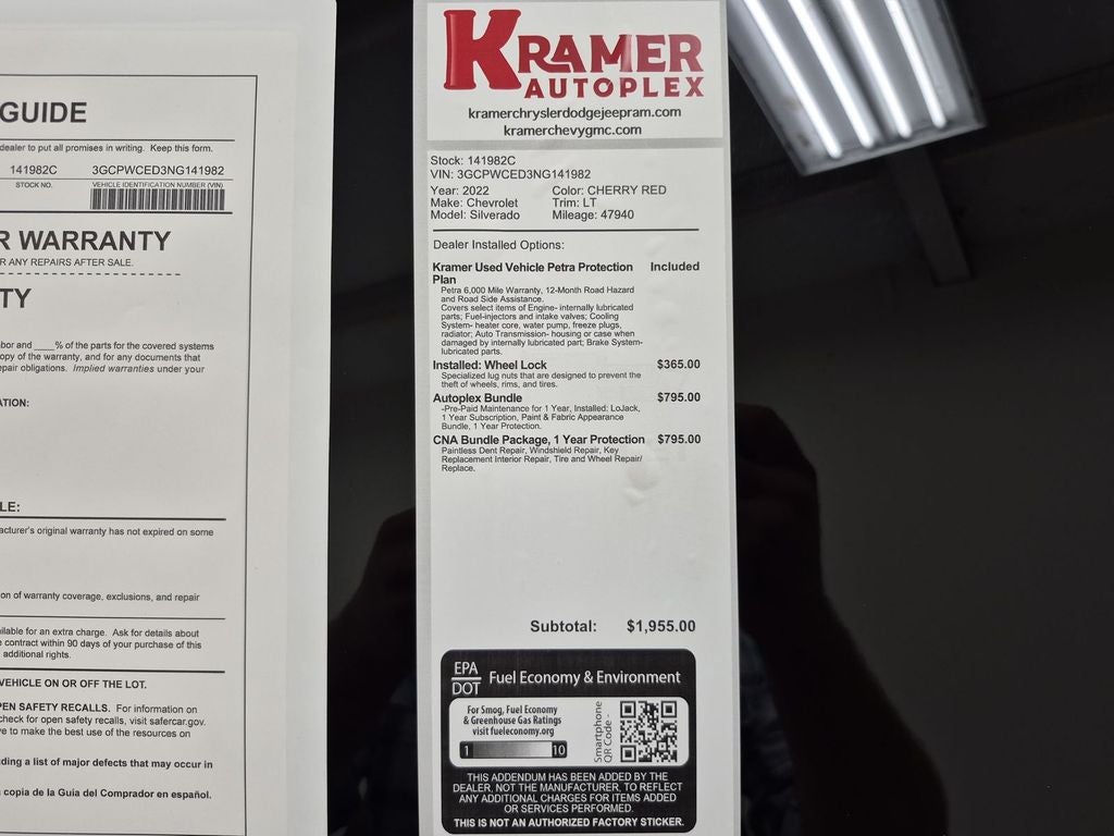 Find exceptional value with this pre-owned 2022 Chevrolet Silverado 1500 LT, now available in Livingston, TX. Powered by a robust V8 5.3L gasoline engine and rear-wheel drive (RWD), this Chevrolet Silverado delivers confident towing and highway performance with low 47,940 miles on the odometer. The LT trim balances comfort and capability, offering a refined interior and practical features for daily driving or weekend work. This truck is priced to move — the best price in the area — making it a smart choice for buyers seeking performance and savings. Key convenience and safety features include Remote Start for warm or cool cabin preparation, a Heated Steering Wheel for cold-weather comfort, and Steering Wheel Audio Controls for safer, hands-on operation of entertainment and phone functions. A Back-Up Camera enhances visibility and parking confidence, while the CARFAX Clean Report verifies the vehicle's clean history for extra peace of mind. The Chevrolet Silverado's versatile bed and durable build support hauling and jobsite demands without sacrificing cabin comfort. Whether you need a dependable work truck or a comfortable daily driver, this 2022 Chevrolet Silverado 1500 LT in Livingston, TX, offers solid value with a powerful V8, modern convenience features, and transparent history. Contact us to schedule a test drive and take advantage of the best price on this well-maintained, low-mileage Chevrolet Silverado.