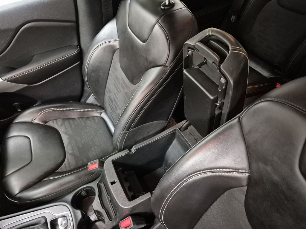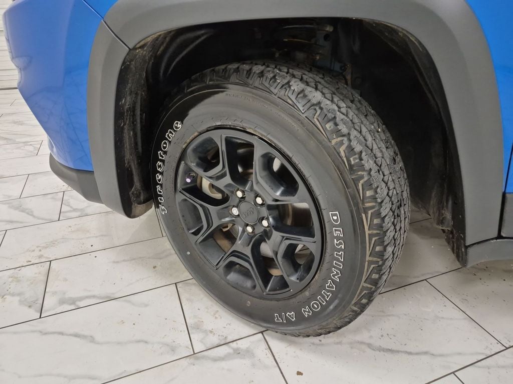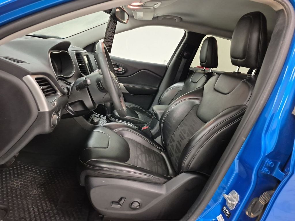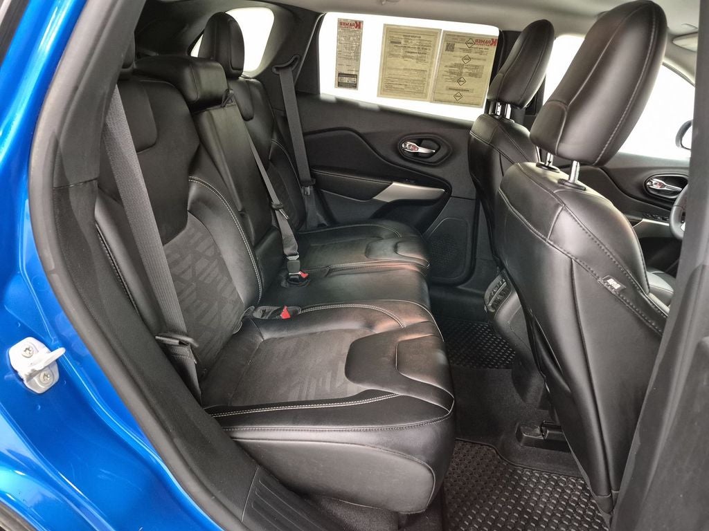Quick Order Package 26S Cherokee X: Heated Front Seats; Silver Anodized Interior Accents; Cherokee X Hood and Liftgate Decal; Light Tungsten Interior Accents; Cherokee X; Windshield Wiper De-Icer; Gloss Black Exterior Accents; Cherokee X Fascia; Front LED Fog Lamps; Full Size Spare Tire; Heated Steering Wheel; Off Road Suspension; Gloss Black Grille Surrounds; 17" X 7.5" Black Painted Aluminum Wheels; Cloth/premium Vinyl Seats with Pixel Play; Remote Start System; Steering Wheel Mounted Audio Controls; Gloss Black Badges; Leather Wrapped Shift Knob; Cherokee X Door Decal; Matte Black Rear Tow Hook; P245/65R17 OWL All Terrain Tires; Offroad Sill Cladding; Power Adjust 8-Way Driver Seat; Off Road Wheel Flares; Premium-Wrapped Steering Wheel; All-Season Floor Mats; Sliding Sun Visors with Illuminated Mirrors; Power Driver Lumbar Adjust. Hydro Blue Pearlcoat. **Equipment listed is based on original vehicle build and subject to change. Please confirm the accuracy of the included equipment by calling the dealer prior to purchase.**