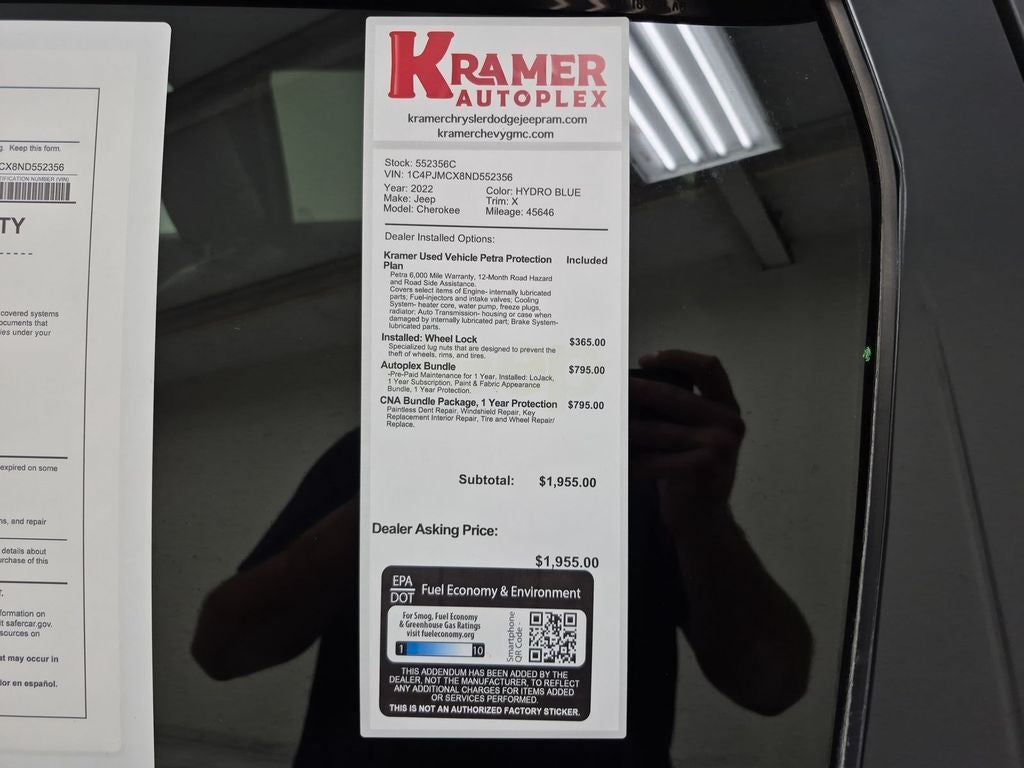 This vehicle's Forward Collision Warning feature alerts drivers to potential front-end collisions. Our dealership has already run the CARFAX report and it is clean. A clean CARFAX is a great asset for resale value in the future. The Jeep Cherokee features a hands-free Bluetooth® phone system. Start this Jeep Cherokee from inside with remote start. This vehicle is a certified CARFAX 1-owner. This model's Lane Departure Warning keeps you safe by alerting you when you drift from your lane. This mid-size suv comes equipped with Android Auto for seamless smartphone integration on the road. This Jeep Cherokee is pure luxury with a heated steering wheel. Apple CarPlay: Seamless smartphone integration for it - stay connected and entertained on the go! Protect the vehicle from unwanted accidents with a cutting edge backup camera system. This 2022 Jeep Cherokee has a V6, 3.2L high output engine. This unit has four wheel drive capabilities.