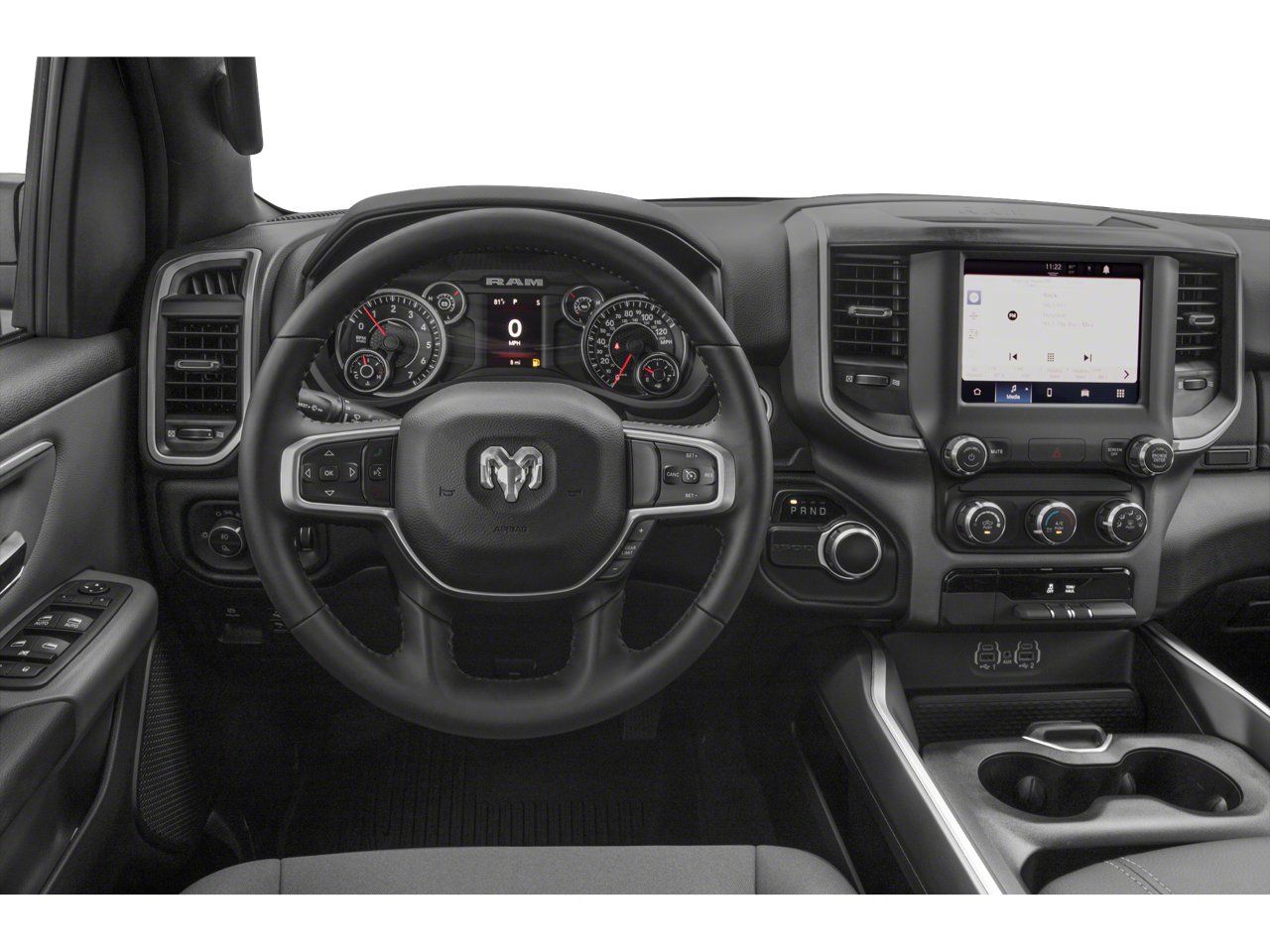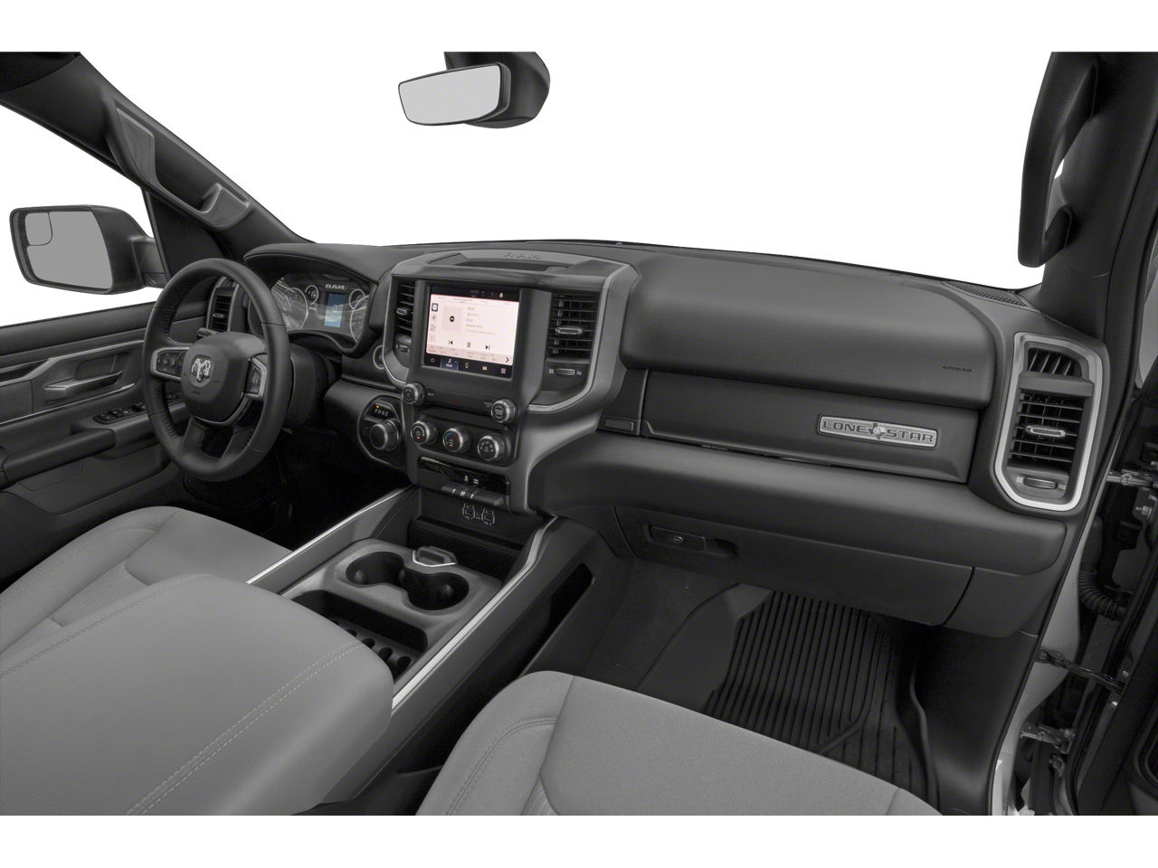 Quick Order Package 24R Lone Star: Lone Star Badge. Night Edition: 275/55R20 OWL All Season Tires; Black Exterior Truck Badging; Anti-Spin Differential Rear Axle; 20" X 9.0" Premium Paint/polished Wheels; Deluxe Cloth Bucket Seats; Grille Surround 1 Black Texture 2 Black; Black Interior Accents; Dual Exhaust with Black Tips; Black Headlamp Bezels; Body Color Front Bumper; Body Color Rear Bumper with Step Pads. Big Horn Level B Equipment Group: Google Android Auto; SiriusXM Radio Service; Bluetooth® Handsfree Phone and Audio; USB Host Flip; Rear Window Defroster; Integrated Center Stack Radio; ParkSense Front/rear Park Assist with Stop; Rear View Auto Dim Mirror; Power Adjustable Pedals; For More Info. Call 800-643-2112; Rear Power Sliding Window; Rear Dome with On/off Switch Lamp; Connectivity - US/Canada; Lone Star Instrument Panel Badge; Glove Box Lamp; 4G LTE Wi-Fi Hot Spot; 115V Auxiliary Rear Power Outlet; Media Hub with 2 Charge Only USBs; Power 8-Way Driver Seat; Auto Dim Exterior Driver Mirror; Heated Front Seats; Uconnect 5 W Radio with 8.4" Display; Heated Steering Wheel; 8.4" Touchscreen Display; Foam Bottle Insert (door Trim Panel); Class IV Receiver Hitch; Security Alarm; Apple CarPlay; Black Premium Power Mirrors; Remote Start System; SiriusXM Satellite Radio; Exterior Mirrors with Supplemental Signals; Exterior Mirrors Courtesy Lamps; Air Conditioning ATC with Dual Zone Control; 115V Auxiliary Power Outlet; Cluster 7.0" TFT Color Display; Universal Garage Door Opener; Sun Visors with Illuminated Vanity Mirrors; Power 2-Way Driver Lumbar Adjust. Quick Order Package 23R Lone Star: Lone Star Badge. Deluxe Cloth Bucket Seats. Anti-Spin Differential Rear Axle. ParkSense Front/rear Park Assist with Stop. 115V Auxiliary Power Outlet. Billet Silver Metallic CC. Remote Start System. MOPAR Front and Rear Rubber Floor Mats. Cluster 7.0" TFT Color Display. **Equipment listed is based on original vehicle build and subject to change. Please confirm the accuracy of the included equipment by calling the dealer prior to purchase.**
