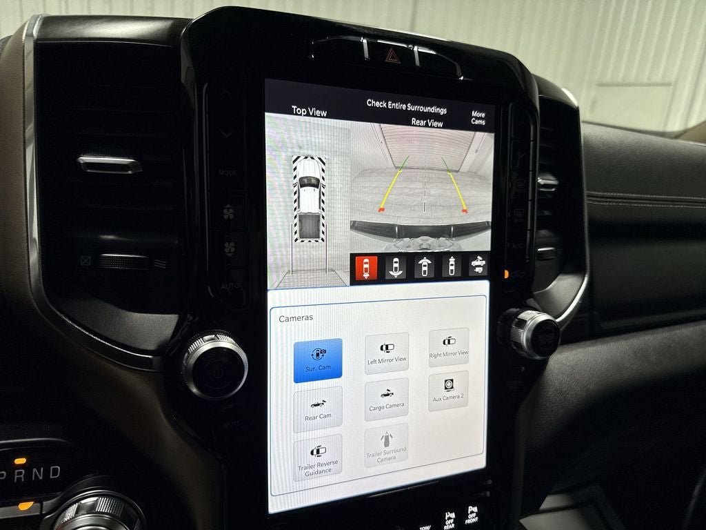 Quick Order Package 2GH Laramie. Laramie Level A Equipment Group: Mirror-Mounted Aux Reverse Lamps; Rain Sensitive Windshield Wipers; Power Adjustable Pedals with Memory; Exterior Mirrors with Supplemental Signals; Power Chrome Tow Mirrors with Convex Spotter and Memory; Exterior Mirrors Courtesy Lamps; Trailer Tow Mirrors; Remote Tailgate Release; Exterior Mirrors with Heating Element; Auto High Beam Headlamp Control; Chrome Exterior Mirrors; Exterior Mirrors with Memory; Mirror Running Lights; Power Folding Mirrors; Foam Bottle Insert (door Trim Panel); 2nd Row in Floor Storage Bins; Radio/driver Seat/mirrors/pedals Memory; Power Adjustable Convex Aux Mirrors. Towing Technology Group B: Center Stop Lamp with Cargo View Camera; Mirror-Mounted Aux Reverse Lamps; Surround View Camera System; Exterior Mirrors with Supplemental Signals; Power Chrome Tow Mirrors with Convex Spotter and Memory; Exterior Mirrors Courtesy Lamps; Trailer Tow Mirrors; Exterior Mirrors with Heating Element; Chrome Exterior Mirrors; Exterior Mirrors with Memory; Mirror Running Lights; Power Folding Mirrors; Trailer Reverse Guidance; Power Adjustable Convex Aux Mirrors. Protection Group: Tow Hooks; Transfer Case Skid Plate Shield. Body Color Bumper Group: Painted Front Bumper; Painted Rear Bumper. Uconnect 5 Navigation with 12.0" Display Radio. 20" X 8.0" Polished Aluminum Wheels. Leather Trimmed Bucket Seats. Anti-Spin Differential Rear Axle. Center Stop Lamp with Cargo View Camera. LED Bed Lighting. Tow Hooks. Clearance Lamps. **Equipment listed is based on original vehicle build and subject to change. Please confirm the accuracy of the included equipment by calling the dealer prior to purchase.**