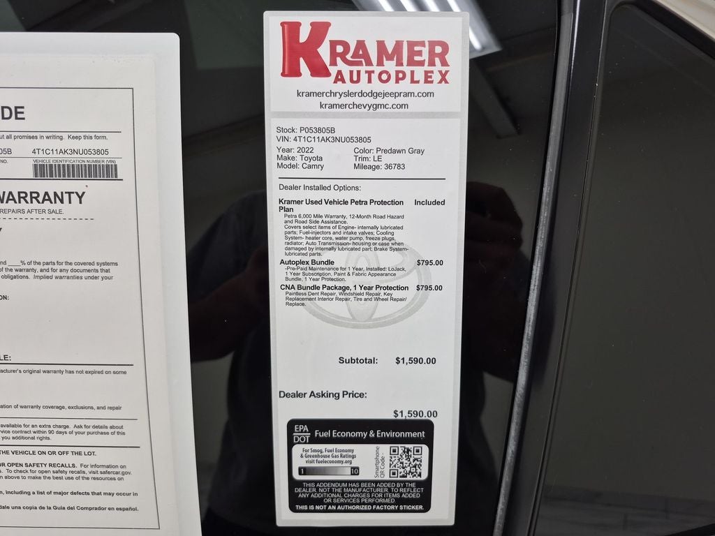 2022 Toyota Camry LE — 36,783 miles — Livingston, TX Looking for a reliable, fuel-efficient sedan at the best price in Livingston, TX? This 2022 Toyota Camry LE with just 36,783 miles delivers comfort, safety, and value. Powered by a 4-cylinder 2.5L gasoline engine and front-wheel drive, this Toyota Camry offers strong fuel economy and a smooth daily driving experience. Features you'll appreciate: - Back-Up Camera for safer parking and reversing - Hands-Free Bluetooth® for calls and audio streaming - Automatic Climate Control for consistent cabin comfort - CARFAX Clean Report confirming a well-maintained history - CARFAX 1-Owner indicating careful previous ownership Well-equipped and professionally inspected, this Toyota Camry LE balances practicality and modern convenience. The interior provides a roomy cabin and intuitive controls, while Toyota's reputation for reliability means lower ownership costs long-term. Ideal for commuters, families, or anyone wanting dependable transportation without paying top dollar. Available now in Livingston, TX and priced to sell — we guarantee the best price in the area. Don't miss this opportunity to own a low-mileage, one-owner Toyota Camry backed by a clean CARFAX report. Contact us today to schedule a test drive or request more information. Drive home a great deal today.