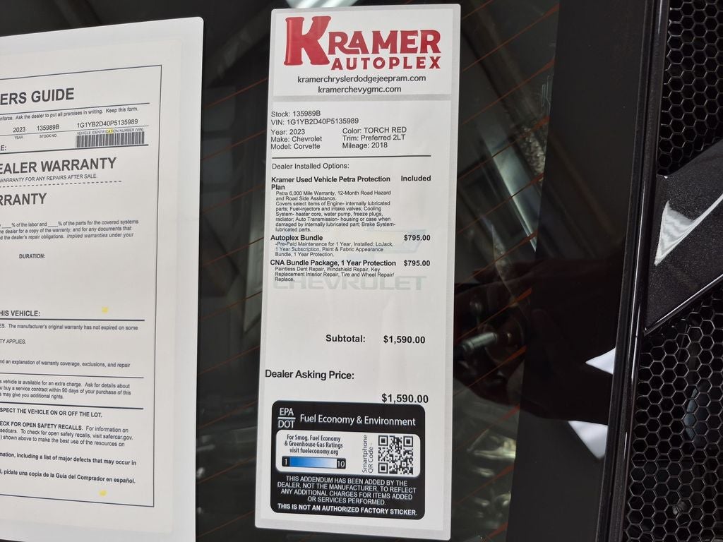 Act quickly — vehicles like this, with minimal miles and clean history, don't last long. Contact us to schedule a test drive and experience the unmatched thrill of the Chevrolet Corvette 2LT for yourself.
