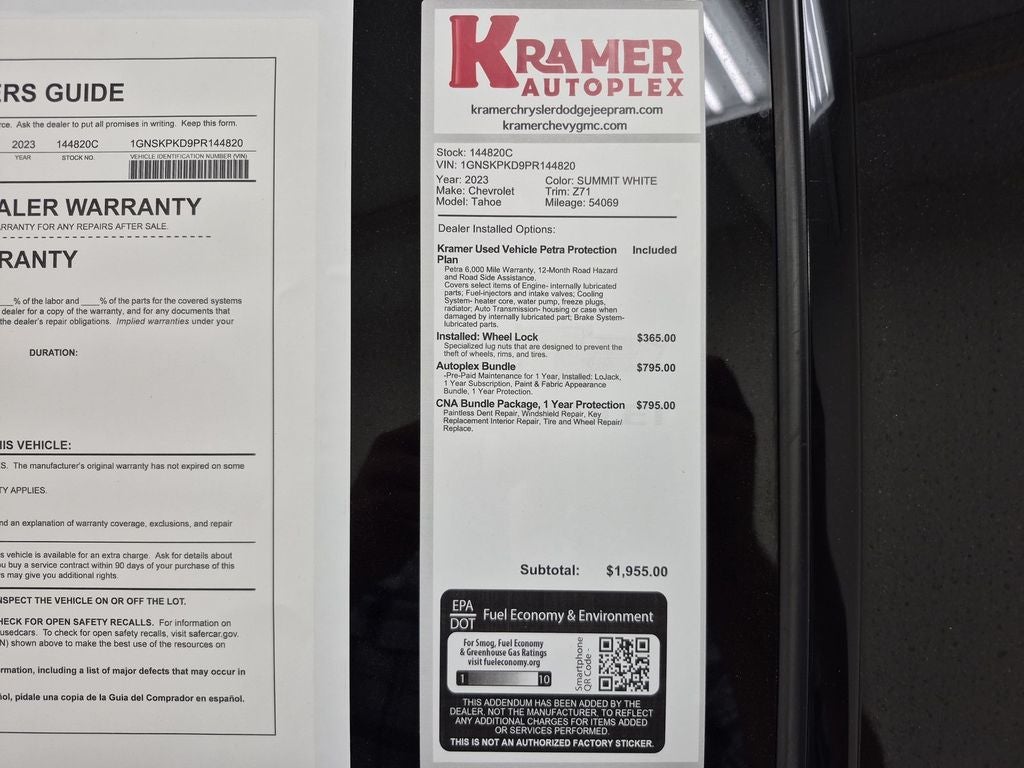 You'll never again be lost in a crowded city or a country region with the navigation system on it. This vehicle has a clean CARFAX vehicle history report. Protect this 2023 Chevrolet Tahoe from unwanted accidents with a cutting edge backup camera system. Apple CarPlay: Seamless smartphone integration for the vehicle - stay connected and entertained on the go! The vehicle is equipped with the latest generation of XM/Sirius Radio. The vehicle's Lane Departure Warning helps keep you in your lane. This 1/2 ton suv features a hands-free Bluetooth® phone system. Start the vehicle from inside with remote start. Good News! This certified CARFAX 1-owner vehicle has only had one owner before you. This 1/2 ton suv features a high end BOSE stereo system. The leather seats in this vehicle are a must for buyers looking for comfort, durability, and style. This Chevrolet Tahoe stays safely in its lane with Lane Keep Assist.