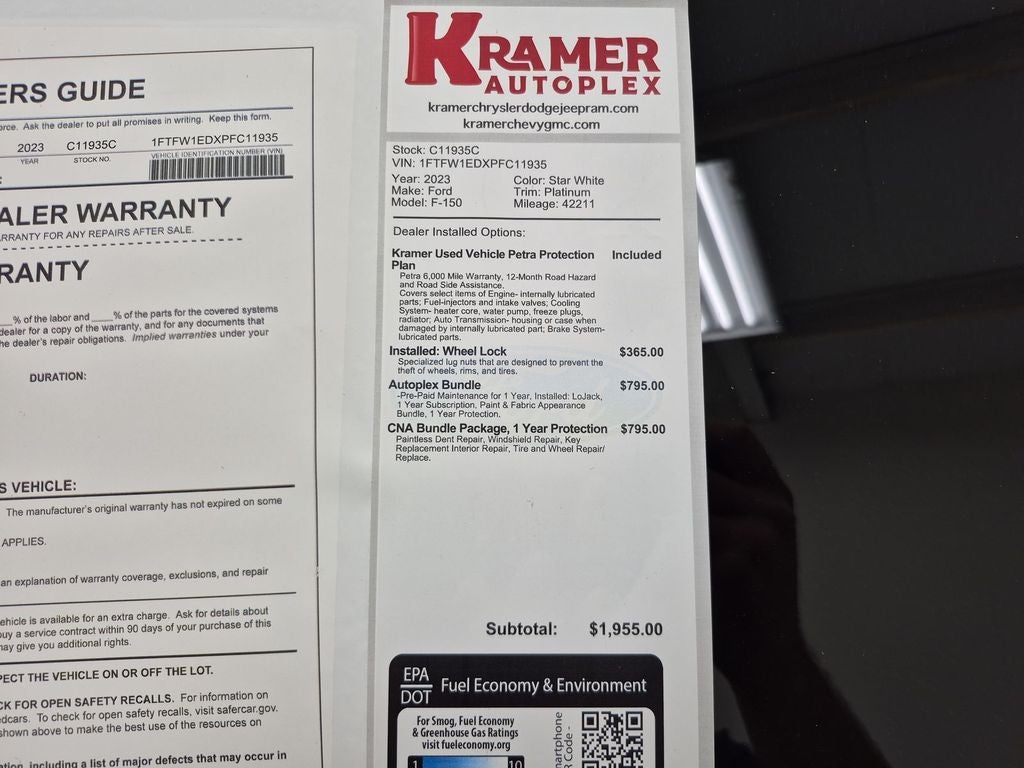 Discover a low-mileage 2023 Ford F-150 Platinum in Livingston, TX — the best-priced premium pickup on the market. With only 42,211 miles, this 4WD Ford F-150 combines rugged capability and refined comfort, powered by a V6 3.5L Full Hybrid Electric (FHEV) powertrain for improved fuel efficiency and strong towing performance. The Platinum trim delivers luxury touches and advanced technology, making it ideal for work, family trips, or weekend adventures. Comfort and convenience features include adaptive cruise control for safer highway driving, hands-free Bluetooth® for seamless phone and media connections, and remote start to warm or cool the cabin before you get in. Enjoy turn-by-turn guidance with factory navigation and smartphone integration through Android Auto for easy access to maps, calls, and music. The 4WD system and robust hybrid V6 provide confident traction and power across Texas roads and off-road conditions. This Ford F-150 Platinum is competitively priced in Livingston, TX, offering exceptional value compared to similar listings. If you're searching for a premium, fuel-efficient truck with modern tech and proven capability, this Ford F-150 checks every box. Contact us to schedule a test drive or request vehicle history and pricing details — don't miss the best-priced 2023 Ford F-150 Platinum in Livingston.