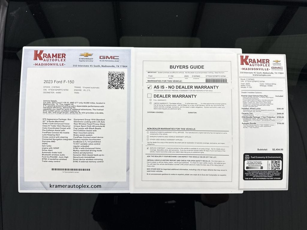 Bluetooth® technology is built into this Ford F-150, keeping your hands on the steering wheel and your focus on the road. This vehicle is a certified CARFAX 1-owner. The installed navigation system will keep you on the right path. Protect it from unwanted accidents with a cutting edge backup camera system. This 1/2 ton pickup has a clean CARFAX vehicle history report. The rear parking assist technology on this Ford F-150 will put you at ease when reversing. The system alerts you as you get closer to an obstruction. This 2023 Ford F-150 has a V6, 2.7L high output engine. This unit embodies class and sophistication with its refined white exterior. When you encounter slick or muddy roads, you can engage the four wheel drive on this model and drive with confidence. This unit is equipped with a gasoline engine. Electronic Stability Control is one of many advanced safety features on this 2023 Ford F-150 .