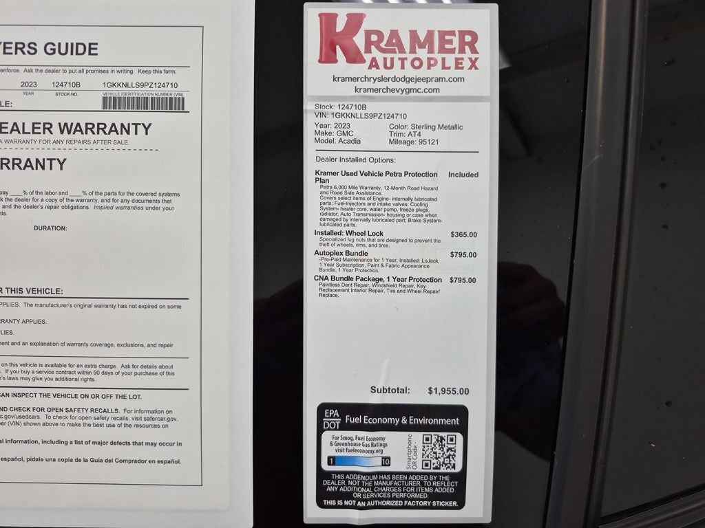 Never get into a cold vehicle again with the remote start feature on this 1/2 ton suv. Our dealership has already run the CARFAX report and it is clean. A clean CARFAX is a great asset for resale value in the future. This vehicle warns of approaching vehicles with Cross-Traffic Alert. The installed navigation system will keep you on the right path. Protect this 2023 GMC Acadia from unwanted accidents with a cutting edge backup camera system. This vehicle offers Android Auto for seamless smartphone integration. Bluetooth® technology is built into this model, keeping your hands on the steering wheel and your focus on the road. The GMC Acadia's Lane Departure Warning keeps you safe by alerting you when you drift from your lane. The GMC Acadia features a high end BOSE stereo system. The leather seats in this GMC Acadia are a must for buyers looking for comfort, durability, and style.