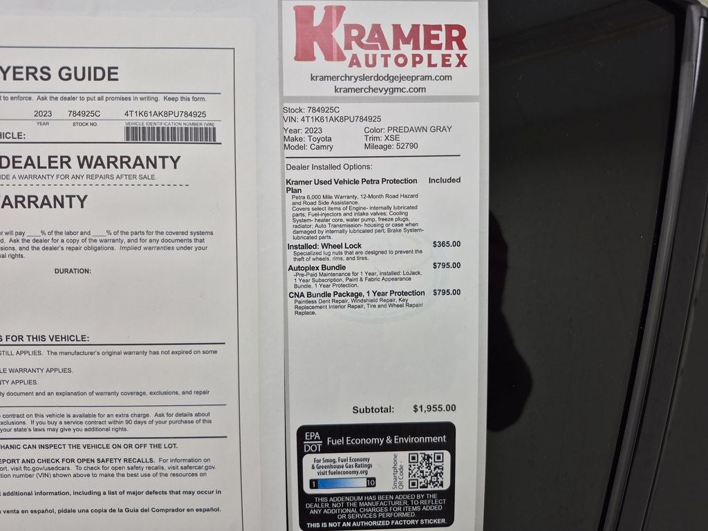 This mid-size car keeps you comfortable with Auto Climate. Good News! This certified CARFAX 1-owner vehicle has only had one owner before you. The Toyota Camry warns of approaching vehicles with Cross-Traffic Alert. The leather seats in it are a must for buyers looking for comfort, durability, and style. See what's behind you with the back up camera on this vehicle. Apple CarPlay: Seamless smartphone integration for the vehicle - stay connected and entertained on the go! Our dealership has already run the CARFAX report and it is clean. A clean CARFAX is a great asset for resale value in the future. Bluetooth® technology is built into this model, keeping your hands on the steering wheel and your focus on the road. This model's blind spot monitor enhances safety. Start the Toyota Camry from inside with remote start. This 2023 Toyota Camry comes equipped with Android Auto for seamless smartphone integration on the road.