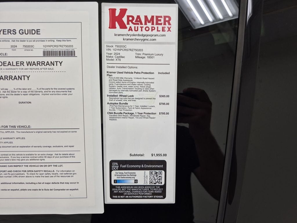 This vehicle is a certified CARFAX 1-owner. Engulf yourself with the crystal clear sound of a BOSE sound system in this vehicle. The leather seats in the vehicle are a must for buyers looking for comfort, durability, and style. This Cadillac XT6 is pure luxury with a heated steering wheel. The installed navigation system will keep you on the right path. See what's behind you with the back up camera on this model. Bluetooth® technology is built into this unit, keeping your hands on the steering wheel and your focus on the road. This 2024 Cadillac XT6 stays safely in its lane with Lane Keep Assist. Never get into a cold vehicle again with the remote start feature on this Cadillac XT6. This model has a V6, 3.6L high output engine. This Cadillac XT6 embodies class and sophistication with its refined white exterior. Set the temperature exactly where you are most comfortable in this 2024 Cadillac XT6 . The fan speed and temperature will automatically adjust to maintain your preferred zone climate.