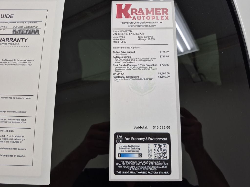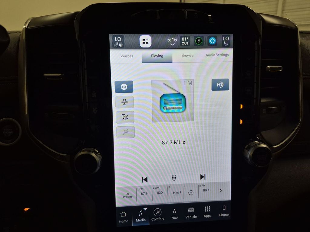 Quick Order Package 2HH Laramie. Laramie Level 1 Equipment Group: Google Android Auto; SiriusXM Radio Service; Blind Spot and Cross Path Detection; LED Tail Lamps; Power Adjustable Pedals with Memory; For Details. Visit DriveUconnect.com; For More Info. Call 800-643-2112; Integrated Voice Command with Bluetooth®; 12" Touchscreen Display; Auto Power-Folding Mirrors; Front LED Fog Lamps; Mirror Running Lights; Alexa Built-In; Apple CarPlay; Power Adjustable Convex Aux Mirrors; Forward and Reverse Utility Lights; Disassociated Touchscreen Display; Remote Tailgate Release; Center Hub; 2nd Row in Floor Storage Bins; Rear Window Defroster; Rain Sensitive Windshield Wipers; Rear Power Sliding Window; Connectivity - US/Canada; GPS Navigation; 4G LTE Wi-Fi Hot Spot; GPS Antenna Input; Exterior Mirrors with Heating Element; Auto Dim Exterior Mirror; SiriusXM with 360L; Global Telematics Box Module; Connected Travel and Traffic Services; LED Reflector Headlamps; Foam Bottle Insert (door Trim Panel); 18" X 8.0" Polished Aluminum Wheels; Off-Road Information Pages; Selectable Tire Fill Alert; Trailer Tow Pages; HD Radio; Uconnect 5 Navigation with 12.0" Display Radio; Power Heated Fold Telescopic Mirrors with Memory; Exterior Mirrors with Supplemental Signals; Exterior Mirrors Courtesy Lamps; Auto High Beam Headlamp Control; Chrome Exterior Mirrors; Exterior Mirrors with Memory; Power Adjust Mirrors; Power Telescoping Mirrors; Auto Dim Exterior Passenger Mirror; Auto Adjust in Reverse Exterior Mirrors; ParkSense Front/rear Park Assist System. Blind Spot and Cross Path Detection. LT275/70R18E OWL On/off Road Tires. Tow Hooks. **Equipment listed is based on original vehicle build and subject to change. Please confirm the accuracy of the included equipment by calling the dealer prior to purchase.**