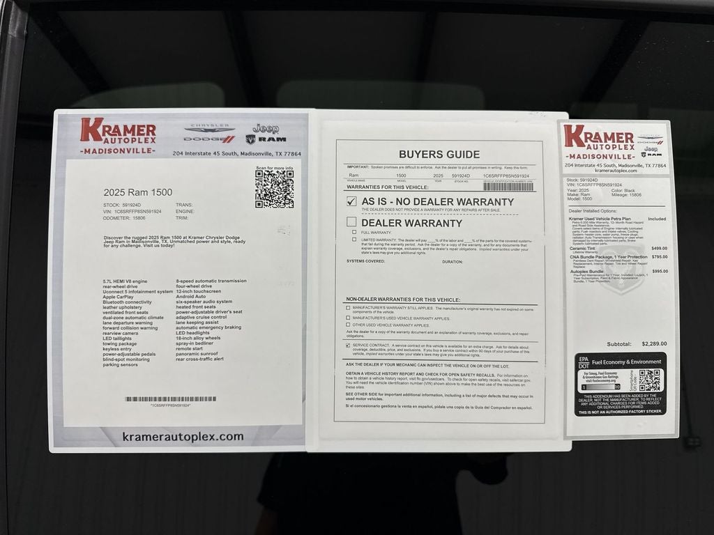2025 Ram 1500 Warlock — low mileage, best price in Madisonville TX. This rugged 4WD pickup sports a fuel-efficient 6-cylinder, 3.0L gasoline engine and just 15,806 miles, delivering strong capability without the wear. Whether you tow, haul, or tackle off-road trails, the Warlock's proven powertrain and four-wheel drive give confidence in any condition.